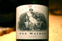 2005 Harlan Maiden - decanted and put on ice as it was too warm initially. A little rubber and smoke. Definitely sweet on the palate. Opened up after 45 minutes in the decanter, but still pretty tannic. Nose was really nice after 2 hours, with coffee notes at the end.