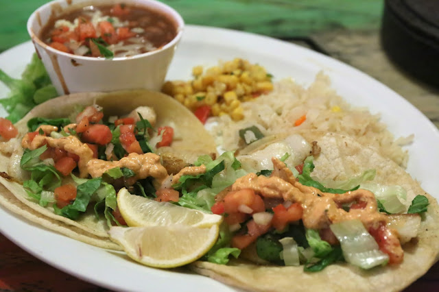 Fish tacos - it's my second time having fish tacos this week, and I thought these were pretty decent, too. I liked the pico de gallo, but the chipotle sauce was even better.