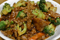 Beef and broccoli - not happy with this. The beef has clearly been marinated in baking soda to the point where the texture just became too tender and soft, and there was too much soy sauce here.