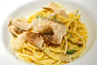 I shaved a little bit of white truffle on top to see it it would work. At this point in the season, the white truffle wasn't fragrant enough and got overpowered by the bottarga. Or maybe I just needed to put a lot more white truffle shavings in!