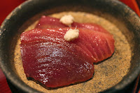 Bonito (鰹) - very, very soft in texture. Definitely has been aged.