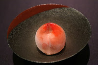 RyuGin specialty -196°C peach candy and +99°C peach jam (-196°Cの桃飴 と +99°Cの飴炊き桃) - we're already past the end of peach season, but I'm glad they were still serving this dessert.