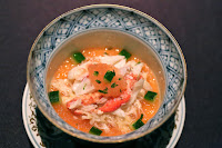 Cold kegani crab egg custard with grated fresh apple vinegar (毛蟹の冷製茶碗蒸し すりおろし林檎の赤酢と共に) - loved this cold chawanmushi (茶碗蒸し), since it's topped with plenty of Japanese horse hair crab meat marinated in vinegar. Little cubes of cucumber added a little crunch.