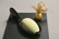 The petit four tonight was gooseberry ice cream, which was interesting and nice.