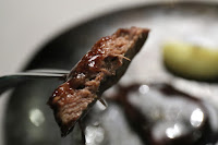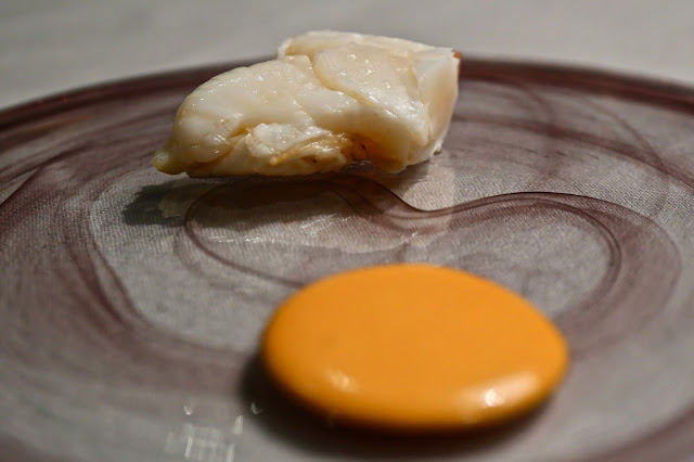 Lobster poached in bell pepper oil with bell pepper aioli - I could taste a little bell pepper flavor in the lobster, but the dish really needed the aioli to come together. The acidity in the aioli was a little stronger than expected, but that wasn't necessarily a bad thing.