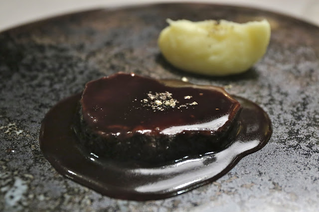 Baby cuttlefish with ratatouille, potato and fennel cream - served on a beautiful glass dish, the 新甲烏賊 from Nagasaki (長崎県) has a nice texture which retains just the right amount of crunchiness and bite while still soft. The cuttlefish itself wasn't really seasoned so one could taste the original flavors, but combining it with the ratatouille or the potato and fennel cream was also nice.