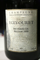 2000 Egly-Ouriet Brut Grand Cru, dégorgée Mai 2008 - nice and yeasty with medium toast, a little sweet grass. Very fragrant with that caramelized nose I love so much. Nice and ripe on the palate with good acidity, and a little orange marmalade. So delicious.