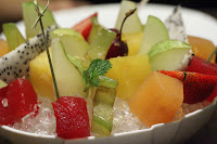 Catalunya fruit salad– no, this ain’t just any fruit salad that you see at Cantonese restaurants… This is better. The pieces of fruit come harder and the don’t taste like something that had just been chopped up moments ago. My understanding is that these were compressed and/or cooked sous vide, and infused with the flavors of different herbs and spices. I think the pineapple and rock melon were paired with cloves, while star fruit tasted minty. The strawberries were halved and the tops were filled with jello that tasted slightly bitter and alcoholic. Refreshing.
