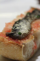 Pa amb tomàquet - a.k.a pan con tomate, which we had with slivers of Cantabrian anchovies on top. Perfect balance of flavors.