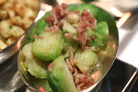 I love Brussels sprouts, especially when they come with bacon... Here they use ventrèche from the southwest of France.