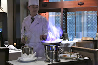 I desperately wanted to get something that was prepared tableside, as we had repeatedly felt the heat on our faces when flames went shooting up from a nearby cart... such as when Hello Kitty's lobster bisque was prepared. So I chose to have a flaming dessert...