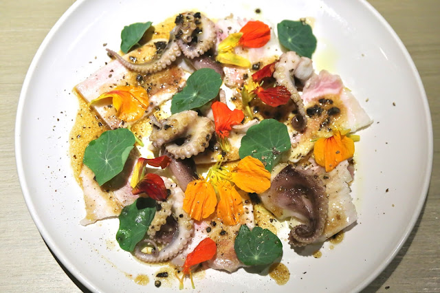 Pork belly / baby octopus / truffle vinaigrette - what a pretty dish! And tasty, too! Those slices of pork belly kinda reminded me of the Shanghainese sliced pork belly (白切肉) I grew up with, except better. The baby octopi were yum, and the dish was garnished with nasturtium flowers and leaves. The truffle vinaigrette was perfect for this.