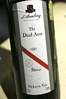 2001 d'Arenberg The Dead Arm - very heavy nose of coconut butter, exotic spices, and very, very sweet on the nose. Sweet on the palate, too. Tannins have softened but still a big wine.