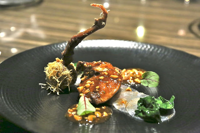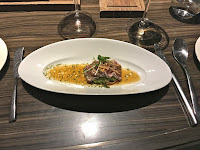 Burgundy escargots with pumpkin velouté, Mimolette emulsion - the old man at the table complained about his soup not being hot enough, but I didn't mind... whether it's considered soup or sauce. The escargots were very tasty, and the staff shaved what looked like summer truffle on top. Really enjoyable.