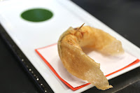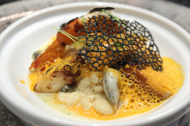 We were all a little surprised when this showed up, because it didn't look like anything we had ordered. As it turns out, this was a complimentary course from the kitchen, and it was basically the same starter I had on my very first visit to Robuchon a Galera back in 2005... back when a 3-course lunch cost less than MOP 300 and the restaurant was mostly empty! This was a deep-fried New Zealand scampi with basil oil dip.