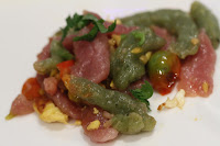 But the dish came with part 2 on the same plate: homemade noodles with leafy amaranth (莧菜) and beetroot, stir-fried with egg, tomato and salted radish (蘿蔔乾). Pretty interesting. Unfamiliar due to the unusual noodles, yet somehow they taste homey to me thanks to the fried egg and tomato - something my mom does at home a lot.