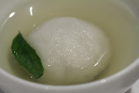 Summer snow (六月雪) - hempseed (火麻仁) tofu, with soy beans and coriander.