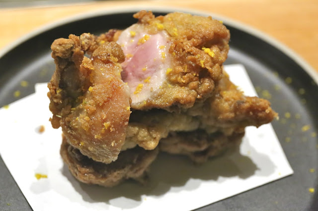 Quail, orange, sansho - another crowd favorite, so just so pink, tender, and juicy! Wonderful fragrance with the shavings of orange zest, and not real heavy on the sansho (山椒).