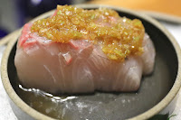 Kampachi amberjack sashimi, negi soy, sesame - the "relish" on top was full of spring onion and very tasty.