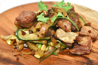 Szechuan spicy New Zealand crispy lamb belly (川味香辣紐西蘭小羊腩) - served with slices of cucumber, pickled mustard (榨菜), spring onions, chili and Szechuan peppercorns. Good amount of acidity here to balance out the fat.