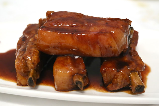 Braised spare ribs with dark soya sauce, Chinese wine and red yeast (三杯紅麴一字排骨) - I opted for this choice instead of the "old" version that is braised spare ribs with preserved plums in caramelized black vinegar (話梅肉桂糖醋排骨).