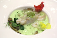 Les Caviar: blue crab meat with crustacean jelly, sea urchin and Oscietra caviar, cauliflower puree - there was caviar both at the bottom as well as on top. The crustacean jelly at the bottom packed plenty of flavors, and I could definitely taste the sweet and creamy sea urchin as well as the sweet cauliflower. A lovely, cool dish to kick off dinner.