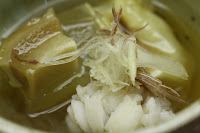 Pike eel (鱧) - from Kyoto (京都), served with tofu skin (湯葉), wheat bran (麩), myoga and winter melon (冬瓜). They did a pretty good job with the pike eel, as I only noticed 1 or 2 tiny little bone fragments.