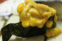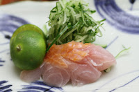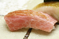 Tuna belly (トロ) - I normally don't eat tuna for environmental reasons, but gave in today. This was wild tuna from Kyoto, and not something you see everyday. Very veiny and fatty. Very yummy.