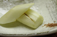 White asparagus - Dutch. This was pretty sweet, with only a slight hint of bitterness. The ground rock salt really brought out the sweetness.