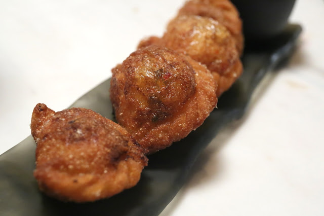 Crispy salmon skin, cured salmon roe, whipped horseradish - deep-fried fish skin is always a good idea, and these were no exception. So satisfyingly crunchy...