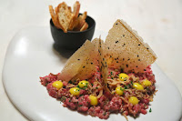 Organic 100% grass fed steak tartare, pickled egg yolk, 15 secret ingredients - "organic" and "grass-fed" are two buzzwords that are likely to push people's buttons, so I promptly ordered it up. Unfortunately I found the flavors to be a little bland... as in the beef itself. The combination of 15 secret ingredients also produced a lighter result.