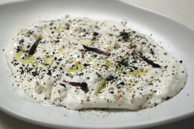 Fresh burrata, tomato, cherry, black sesame, lavender - this was very, very creamy. pretty nice.
