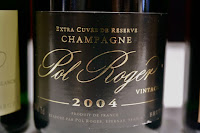2004 Pol Roger Brut - lots of toast, nutty, caramelized with notes of Chinese licorice, nice and mineral, almost salty plum. Drinking beautifully now.