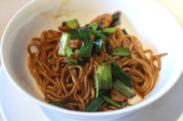 Noodles with spring onions and soy (蔥油開洋拌麵) - when this arrived, I started at it in utter amazement and said "WHAT THE FUCK..." First of all, this came in a regular-sized rice bowl... which is waaaay too small of a vessel to serve noodles in. Then they decided to only fill up HALF of this small bowl with noodles. And they have the gall to charge HKD 50 for this. To add insult to injury, they didn't even bother to turn the spring onions into chiffonade, and also didn't bother to wilt and char them... when I could go to any branch of Crystal Jade La Mian Xiaolongbao (翡翠拉麵小籠包) and gotten a more delicious bowl that is at least 3 times the size... I think calling it "highway robbery" would be an understatement!