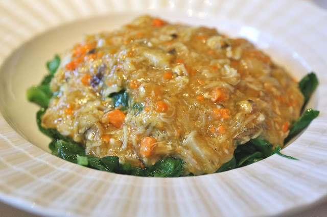 Sautéed pea sprouts with fresh water crabmeat (蟹份豆苗) - it's hairy crab (大閘蟹) season, so I felt obliged to order something with crab roe. The pea sprouts are in season so they're pretty tasty, and the topping of crab roe with crab meat was pretty good, too.
