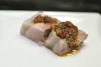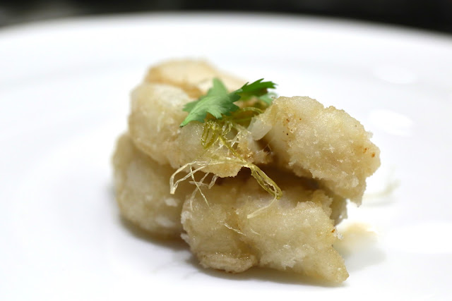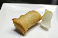 Deep fried spring roll (炸春捲) - the tiny spring roll was OK, but the thin sliver of yuzu (柚子) rind on top of the pickled radish made things a little more interesting.