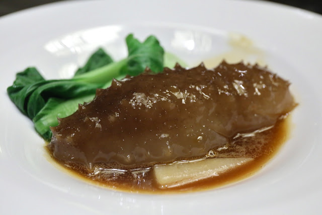My bowl of sea cucumber also came with the sauce smudged on the side of the bowl, and once again this is a detail that would not be overlooked at a nice establishment in Hong Kong. After all, it doesn't take much to take a towel and wipe it clean. Another service detail was that when one of the guests left the table, the server thought nothing of removing the cloche covering the plate. It seemed obvious that common sense would dictate that the cloche not be removed lest the food turned cold... but that's just lack of training...