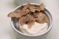 Since dad enjoyed his ice cream so much last year, I decided to just get some Häagen-Dazs vanilla ice cream and shave the rest of the white truffle on top... Since I didn't get a big pint this year, dad was only allowed about half a scoop...