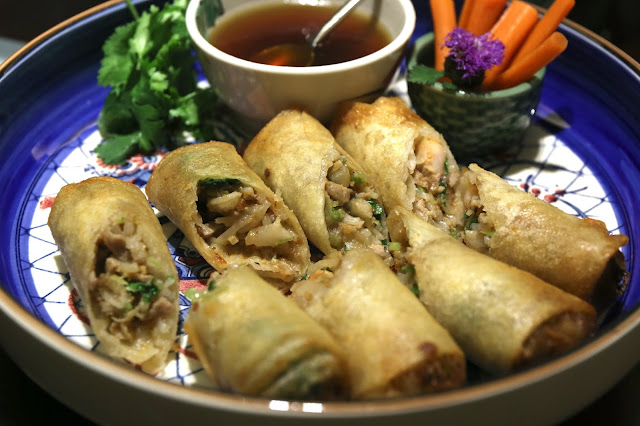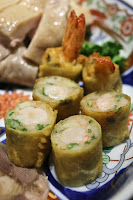 Spring rolls with flounder (扁魚春卷) - stuffed with fried flounder, minced prawn, and bean sprouts. Very tasty.