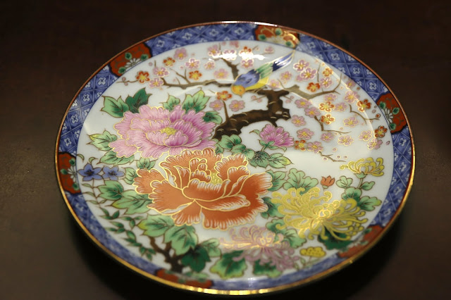 We did not ask for a private room on account of the minimum spend, and were seated at a heavy, solid wood table in the common dining room downstairs. The beautiful Japanese porcelain apparently is irreplaceable.