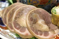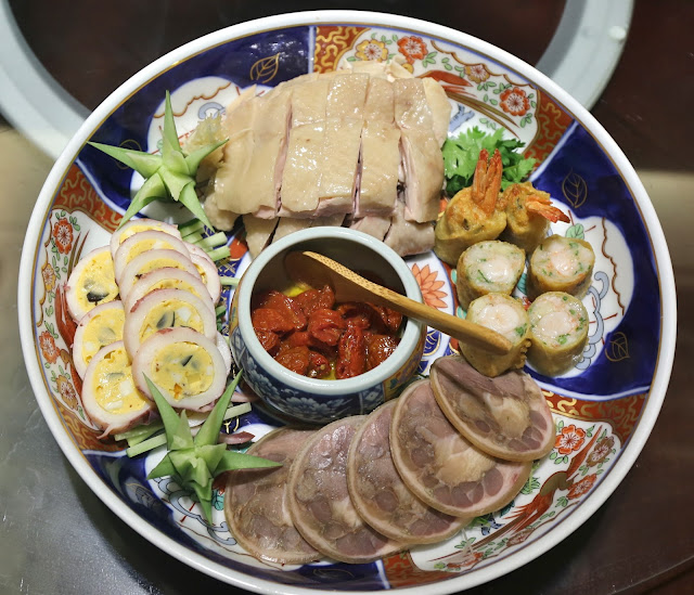Stuffed pig trotter (捆蹄) - the bone was removed and the front trotter was stuffed with pork marinated with red lees (紅糟肉). Meant to signify how husband and wife are meant to accommodate each other after marriage. Love this, especially because of the exotic spices. Too bad there was so little of it.