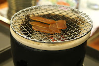 And it's usually lightly grilled. Here's it's brushed with Shaoxing wine (紹興酒) and put on a grill.