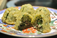 Deep-fried dumplings with oyster and vegetable (蚵嗲) - a popular dish along coastal areas dotted with oyster farms. The dough is stuffed with diced oysters, shredded vegetables, and shredded pork before being deep-fried to a crisp. Seemingly slightly under-seasoned but still tasty.