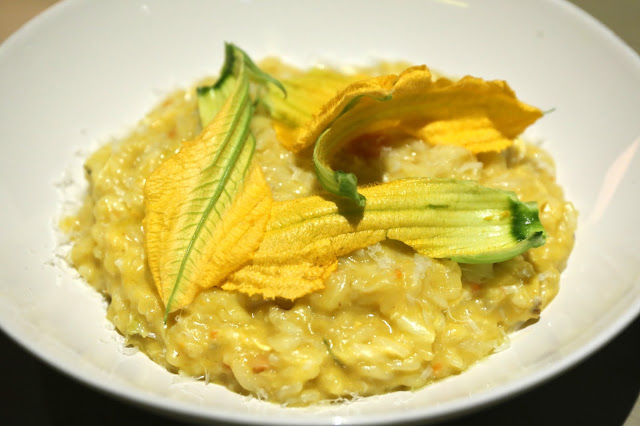 Risotto with crab - an off-menu item that we were suggested to take in lieu of the bone marrow risotto. Made with zucchini, celery root, crab meat, and garnished with zucchini flowers.