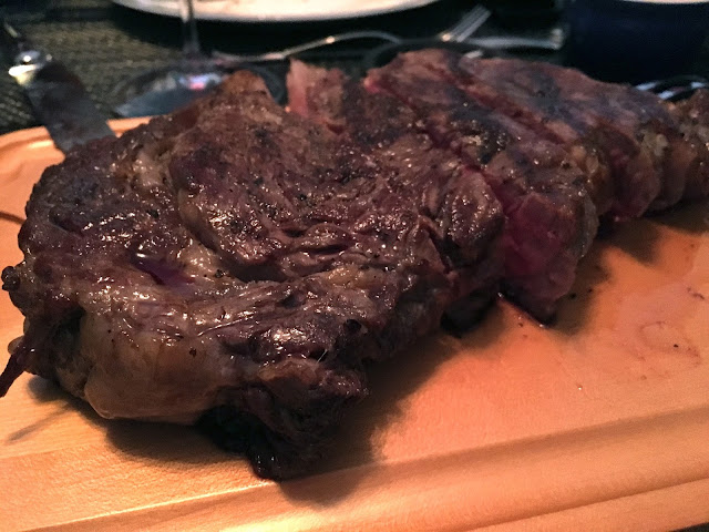 We decided to make it a "surf and turf" evening, so our friends marinated and grilled a nice, juicy piece of steak. Everyone seems to prefer the grain-fed US beef... except me, that is. But even though I find it less environmentally friendly, I'll still eat it, of course... And yeah, it was damn tasty!