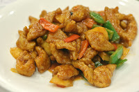 Stir-fried tripe with mixed vegetables (七彩炒肚尖) - one of my favorite dishes here. Tonight we didn't let the dish get cold with our incessant picture-snapping, so the wok hei (鑊氣) was still pretty much in full force by the time I had my first mouthful. Someone commented that the dish tasted a little sweet tonight - which was the same comment I heard from another friend on my last visit - but I don't have an issue with this. The best thing, though, was that the chef remembered our request for more Indian almonds (欖仁) from prior visits, and provided an extra bowl of it. These were so fragrant and delicious after frying.