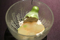 RyuGin specialty -196°C peach candy and +99°C pear jam (-196°Cの桃飴 と +99°Cの飴炊き洋梨) - I can't get enough of this dessert, and thankfully the seasonal fruit is now pear.