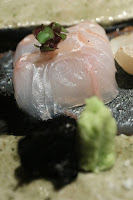 Yellowtail (鰤) - interesting that the chef chose to give us two different cuts. The more marbled belly was, naturally, more fatty so incredibly soft and tender. The leaner part was also very tender. Served with minced ginger.