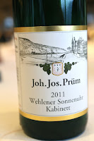 2011 Joh.Jos. Prüm Wehlener Sonnenuhr Riesling Kabinett - petrol, polyurethane, white flowers, and a little flinty. Actually pretty sweet on the palate for a kabinett. Originally meant to be paired with the goose liver and langoustine.