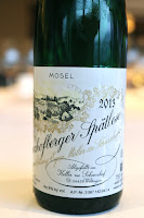 2013 Egon Müller Scharzhofberger Riesling Spätlese - white flowers, white pepper, petrol, and flint. Acidity was actually quite high on the palate. Originally meant to be paired with the dessert, but we thought the high acidity here didn't really work well with the dessert, and thought the JJ Prüm would have been a better pairing.